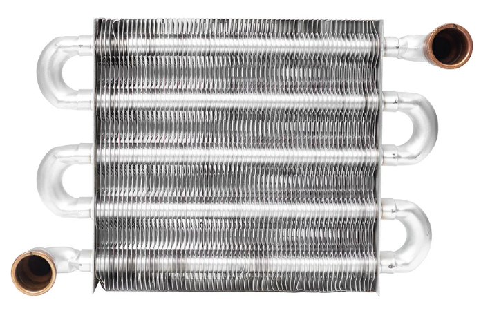 Между собой трубки разделены множеством медных пластин, обеспечивающих значительную площадь поверхности теплообмена.